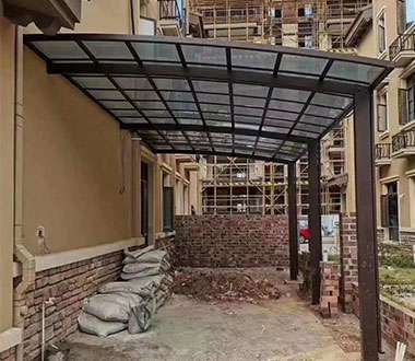 产品选用中国十大铝型材企业——广东伟业铝材出品的高强度铝合金材料,抗冲击、不生锈、不老化,确保产品结实耐用,遮阳板材选用原生进 口德国拜耳耐力板,耐候性和抗击力较强,阻燃防老化,坚固耐用。一螺丝、封盖等配件采用304不锈钢、高强度铝合金等材料制作,细节同样 经得起考验,让客户对产品无可挑剔。
